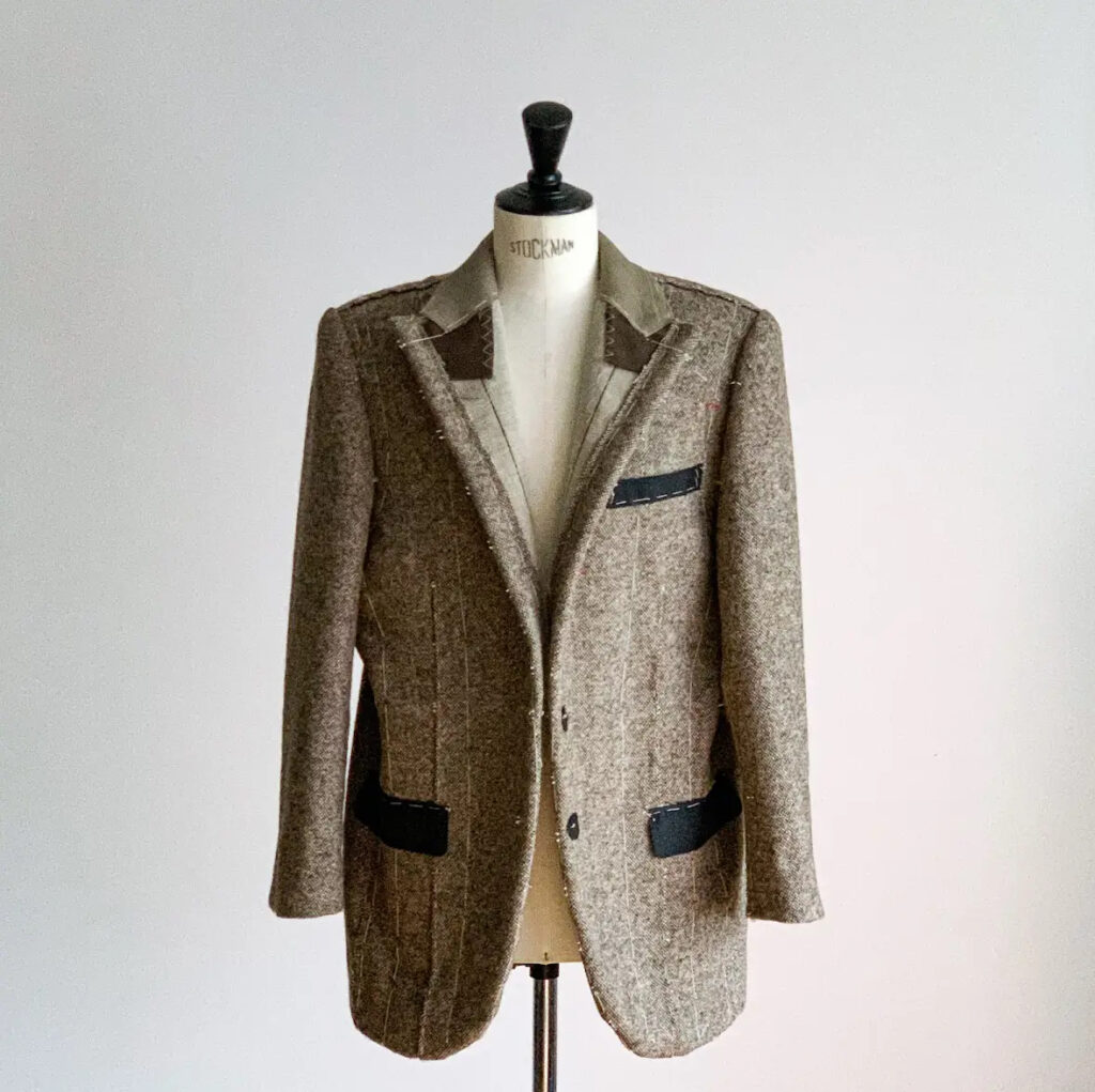 参考写真を見ていただければ何となくわかるかもしれませんが、イメージとしては仮仕上げの状態でもう一度後試着して頂き、仕上がりの確認や細部のバランス・寸法や体型補正などを確認して仕上げにかかるメニューです。